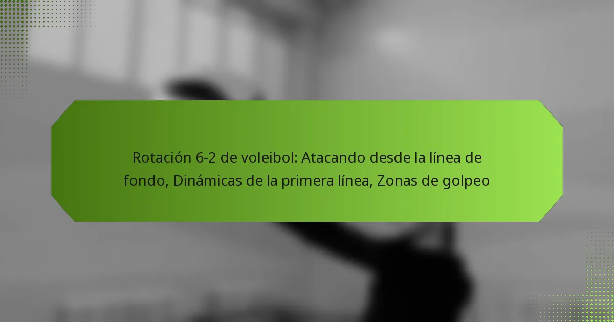En la rotación 6-2, típicamente hay seis zonas de golpeo en la cancha, cada una correspondiente a áreas específicas donde los jugadores pueden golpear el balón. Estas zonas incluyen la parte delantera izquierda, la parte delantera central, la parte delantera derecha, la parte trasera izquierda, la parte trasera central y la parte trasera derecha. Cada zona tiene características únicas que influyen en el tipo de ataque que un jugador puede ejecutar.